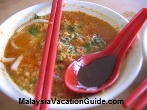 Lorong Seratus Tahun Curry Mee.This stall is located at 55, Lorong Seratus Tahun, Georgetown and is opened from 7:30am to 2pm. It is closed on Thursdays. This curry mee is not so thick but watery with stronger taste of coconut milk. Put your own portion of chilli paste for better aroma and taste. Ingredients include prawns, cuttlefish and tofu puffs.
